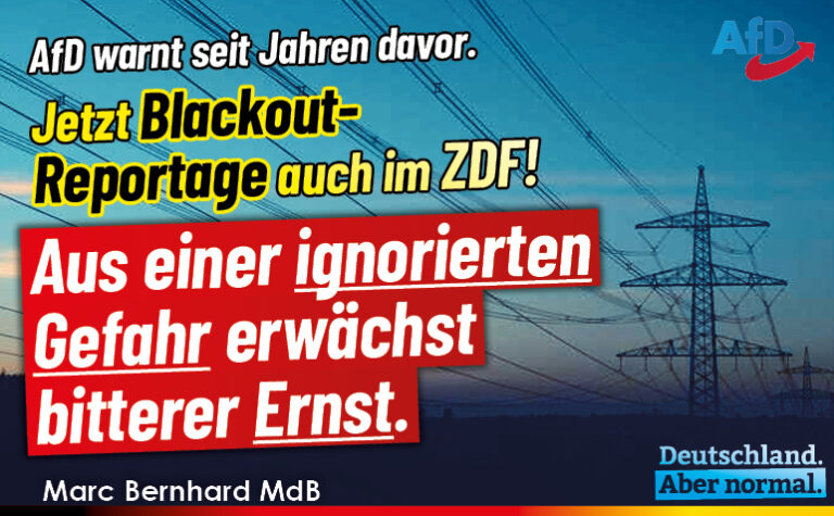 Die AfD warnt bereits seit Jahren vor der Gefahr eines Blackouts, verstärkt mit Beginn der Energiekrise 2021/22. Der Aufschrei und das Dementi der Leitmedien war dabei regelmäßig zu erwarten. So wurden AfD-Autoren als Verschwörungstheoretiker und Spinner diffamiert. Jetzt haben auch die Leitmedien erkannt, dass sich die Befürchtungen und Prognosen der AfD als zunehmend realistisch erweisen.