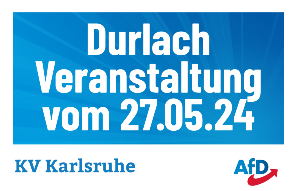Montag. 27 Mai, in der Karlsburg in Durlach Am Montag, 22.05.2024, findet in der Karlsburg in Durlach ab 19 Uhr eine Veranstaltung mit dem EU-Kandidaten Marc Jongen MdB mit den Gemeinderatskandidaten der Karlsruher AfD statt, zu dem alle Bürger eingeladen sind. Den Bürgern Rede und Antwort stehen werden die beiden amtierenden Stadträte und Gemeinderats-Spitzenkandidaten Dr. […]