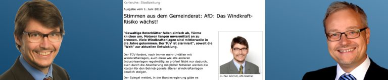 Der Spiegel meldet, in der Bundesregierung gäbe es Fürsprecher für die lange überfällige Abschaffung der Vorrangeinspeisung von Wind- und Solarstrom – was den Ertrag der Binnenwindkraft weiter reduzieren wird. Dumm nur, dass der Gemeinderat gerade erst zugestimmt hat, einem anderen – wohl besser informierten – Investor die Anteile an einem älteren Windpark für über 4 Mio. € abzukaufen. Wir stimmten am 20.03.18 als einzige Gemeinderatsgruppierung dagegen, und unsere nicht nur damals geäußerten Bedenken bewahrheiten sich nun.