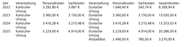 Das Tiefbauamt hat für den Faschingsumzug 2025 für die Sicherung mit Großfahrzeugen Kosten in Höhe von rund 17.000 Euro (brutto) ausgewiesen.