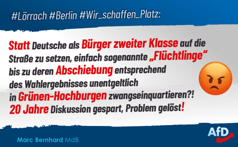 Der linksgrüne Wahn, Migranten aus aller Welt hierzulande eine Vollversorgung auf Steuerzahlerkosten zu bieten und dafür die eigenen Bürger mit Füßen zu treten, hat einen neuen, traurigen Höhepunkt erreicht. In Lörrach verlieren 40 Mieter ihre Wohnung und in Berlin werden 110 Senioren aus einem Seniorenstift geworfen. Der Grund ist jeweils derselbe: Man will lieber Migranten unterbringen. Selbst in der Kirche und den Wohlfahrtsverbänden sieht man, dass der Betrieb von Flüchtlingsunterkünften wirtschaftlich lukrativer ist.